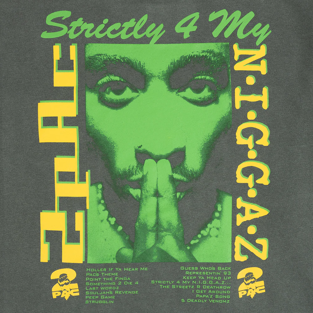 Black pullover hoodie featuring “Strictly 4 My N.I.G.G.A.Z.” printed on the front and back.